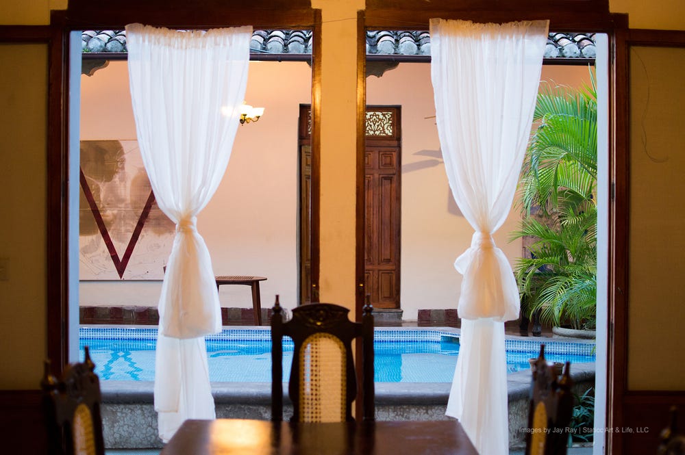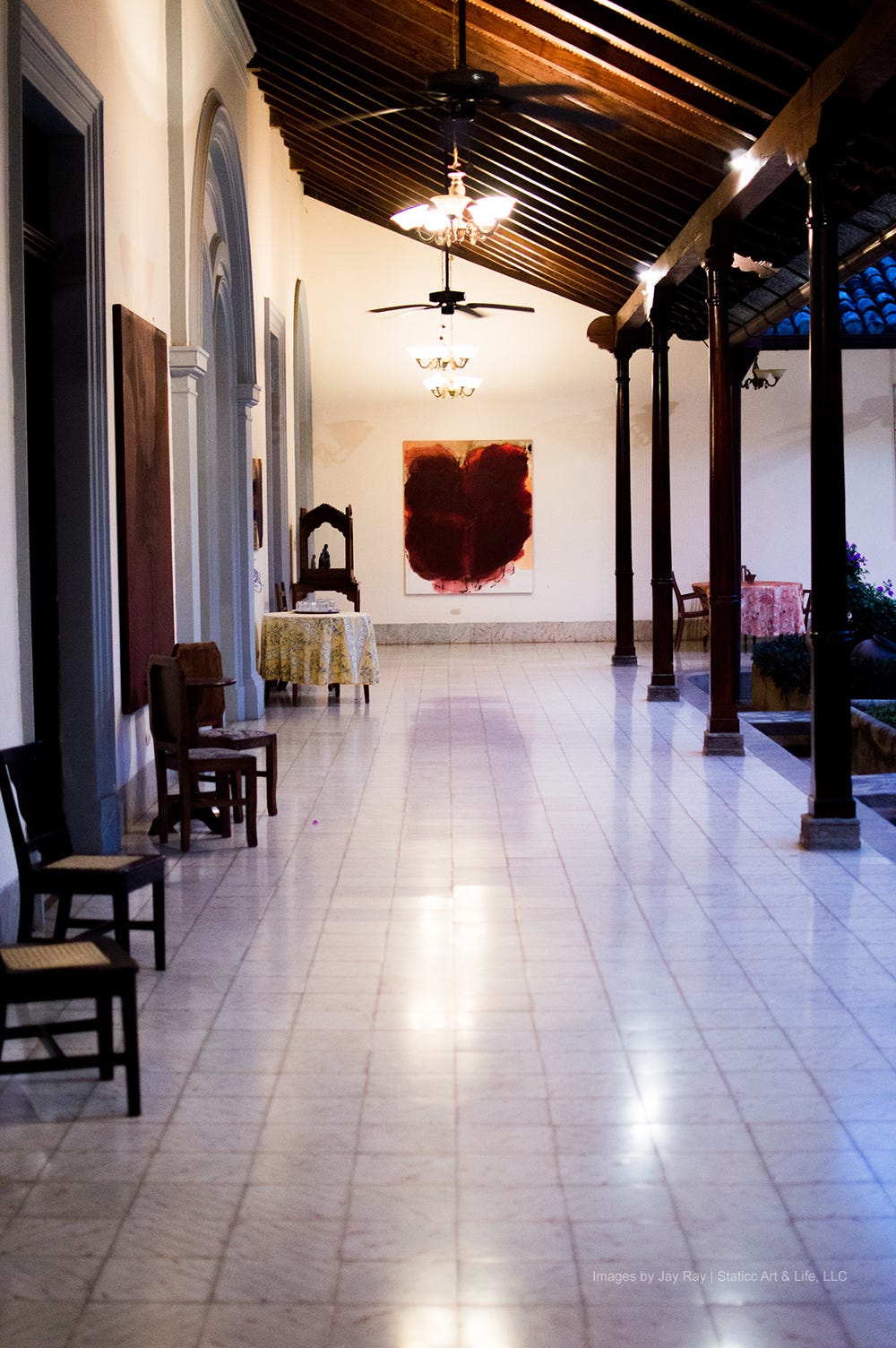 Hotel la Bocona sat on the corner of a very small street, and it is a restored colonial mansion built in the 1860s. When you enter the hotel you’re greeted with friendly staff and an exuberant “¡Hola!” The lobby was gorgeous including an amazing chandelier and artwork on the wall. The inside of the hotel includes a gorgeous courtyard that’s exposed to the elements and surrounded by amazing long hallways all around. The floors were some sort of stone, maybe marble and there were ceiling fans circulating the air through the creative indoor/outdoor space.